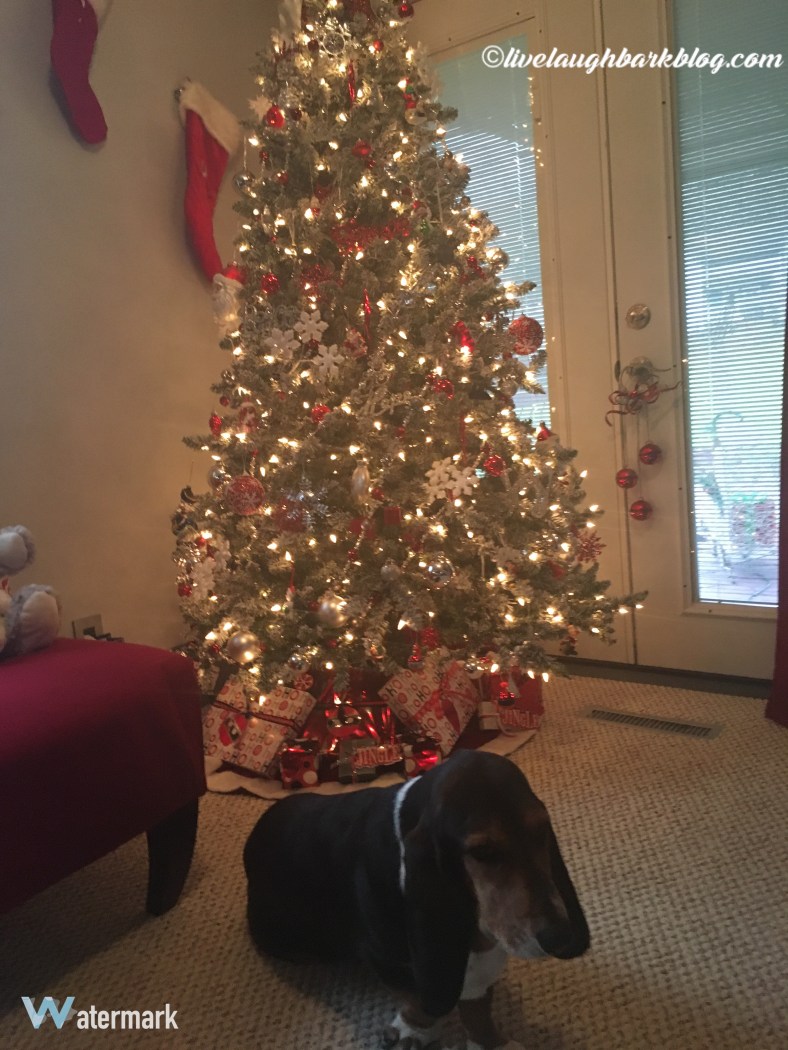 So we finally finished decorating for Christmas and the tree was the final touch. Everyone wanted to help of course, dad put the tree up and made sure the lights worked, people pup helped by taking things off the tree that mom & I were putting on!! Lilly managed to get two ornaments on though, the first one is of course a cute basset hound..