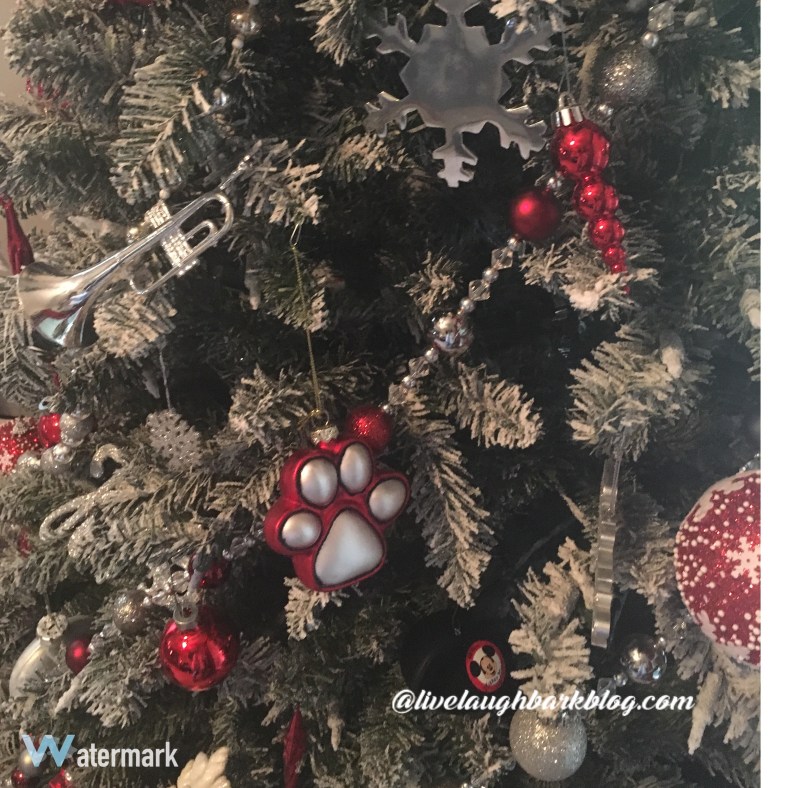 Underneath the paw print you can sort of make out one of people pups favorite ornaments, a Mickey Mouse clubhouse hat that plays music 🎢. He had mom put on a few more Mickey Mouse ones also until it was pointed out that we needed more dog ornaments to even things out!! (Sadly dad really doesn’t have any ornaments, mom doesn’t like his color choices!!, he does get to put a few decorations up in his man cave as mom calls it!!) After all the decorating was over everyone was pooped especially Miss Lilly!!
