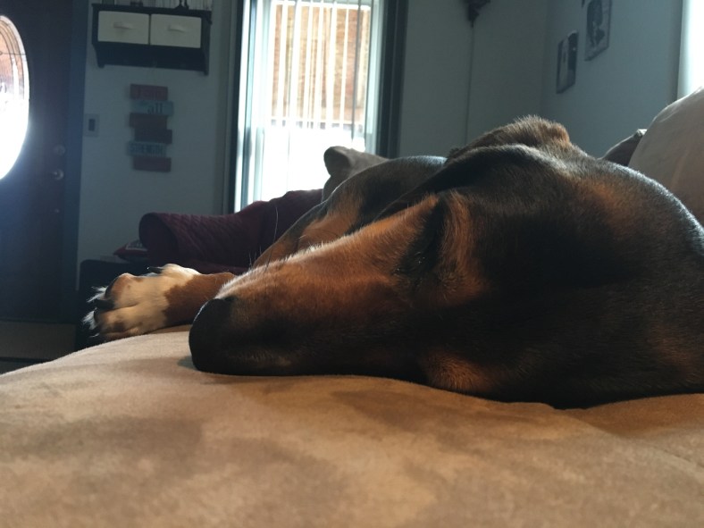 This is how Lilly is handling Sunday …#madeitfromherbedtothecouch