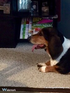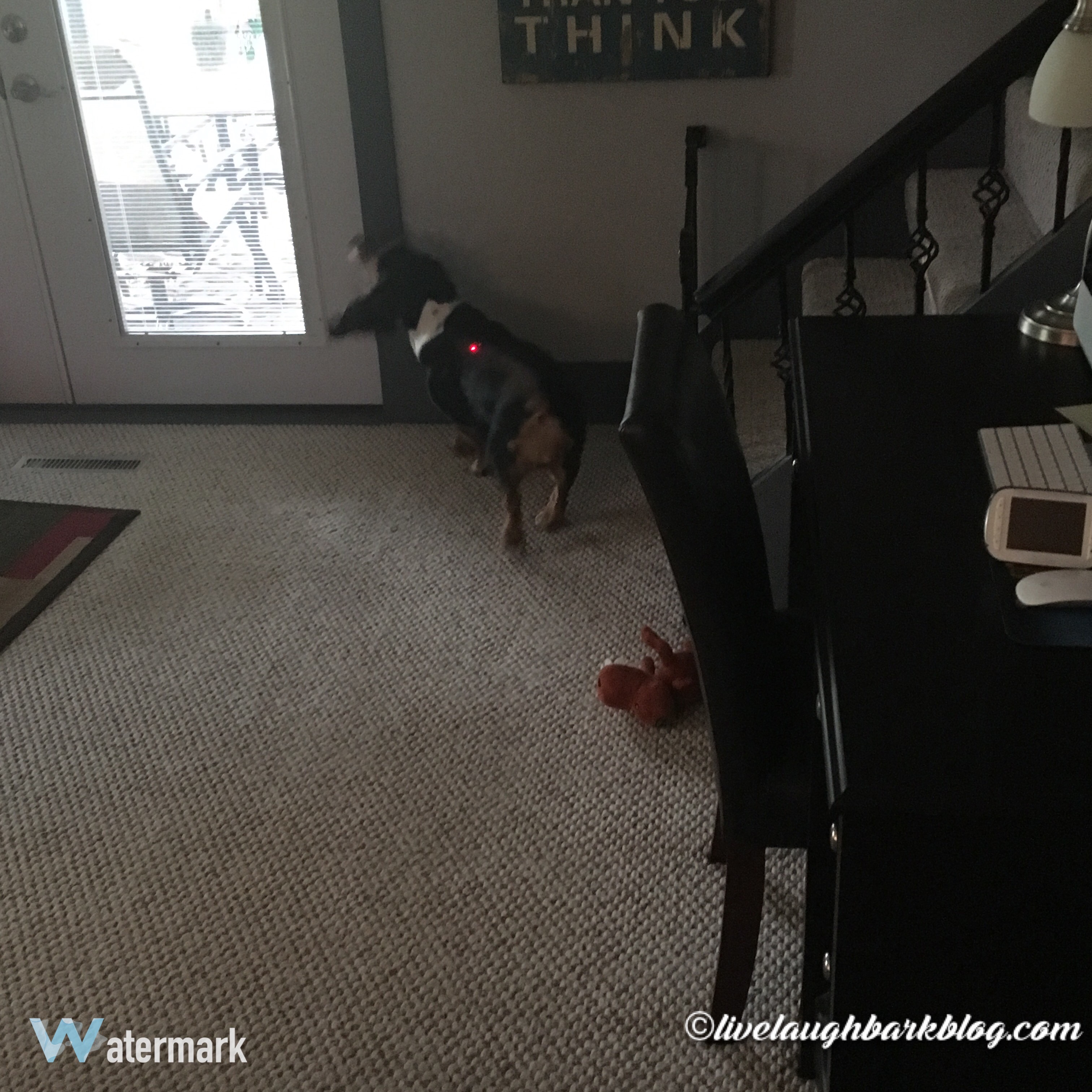 So my basset hound is addicted to this laser light toy for cats ( another reason to add to the list of why I think she is part cat!). It isn’t anything fancy just a little red laser light pointer which we have nicknamed “buggy”. She is so obsessed with it she can hear us clicking the switch on from anywhere in the house. As soon as she hears it she comes running out and gives you the “you have my favorite toy out, we must play now” look. She will literally chase this thing around for hours!