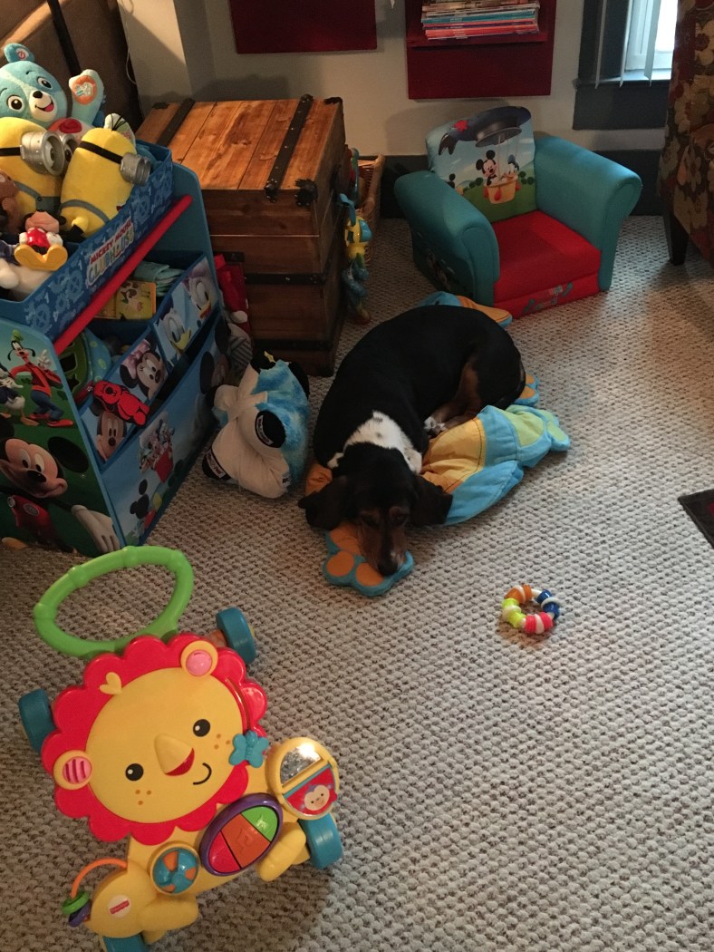 Underneath the paw print you can sort of make out one of people pups favorite ornaments, a Mickey Mouse clubhouse hat that plays music πΆ. He had mom put on a few more Mickey Mouse ones also until it was pointed out that we needed more dog ornaments to even things out!! (Sadly dad really doesn’t have any ornaments, mom doesn’t like his color choices!!, he does get to put a few decorations up in his man cave as mom calls it!!) After all the decorating was over everyone was pooped especially Miss Lilly!!