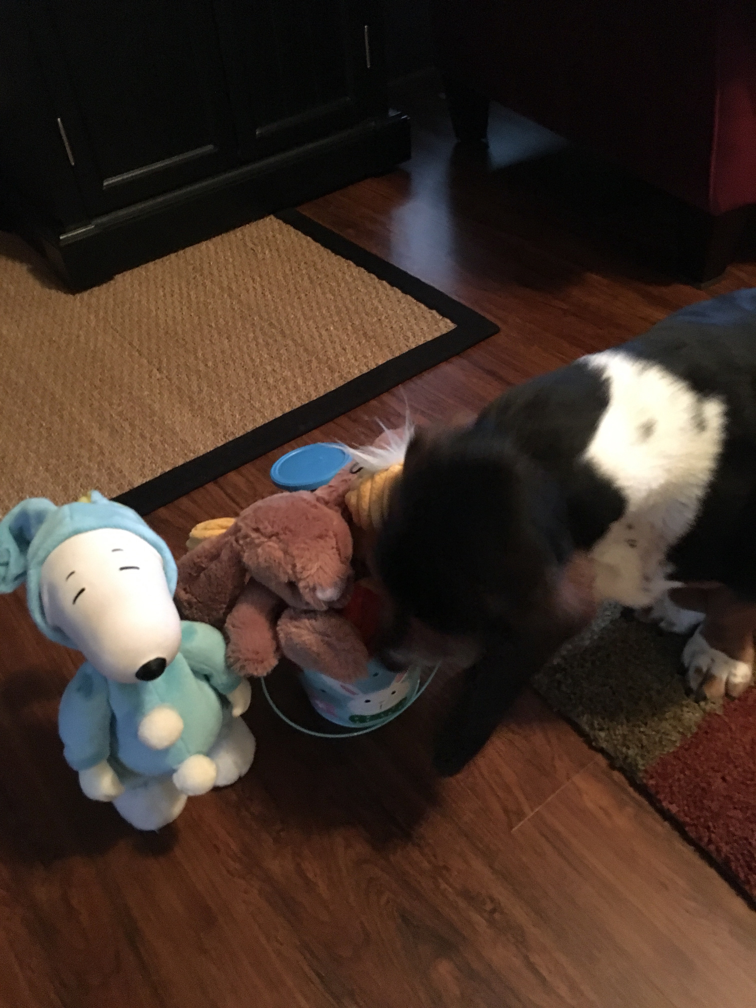 We had lots of fun playing with our new toys and eating lots of treats!! We were only allowed out for very short potty breaks and we had to bundle up!