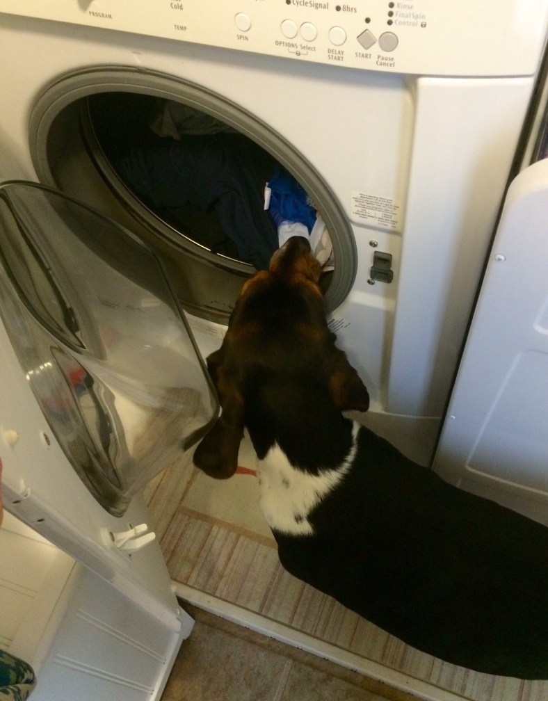 She also enjoys helping me put the laundry in the washer and taking them out of the dryer. She sticks her head right in so she can properly supervise.
