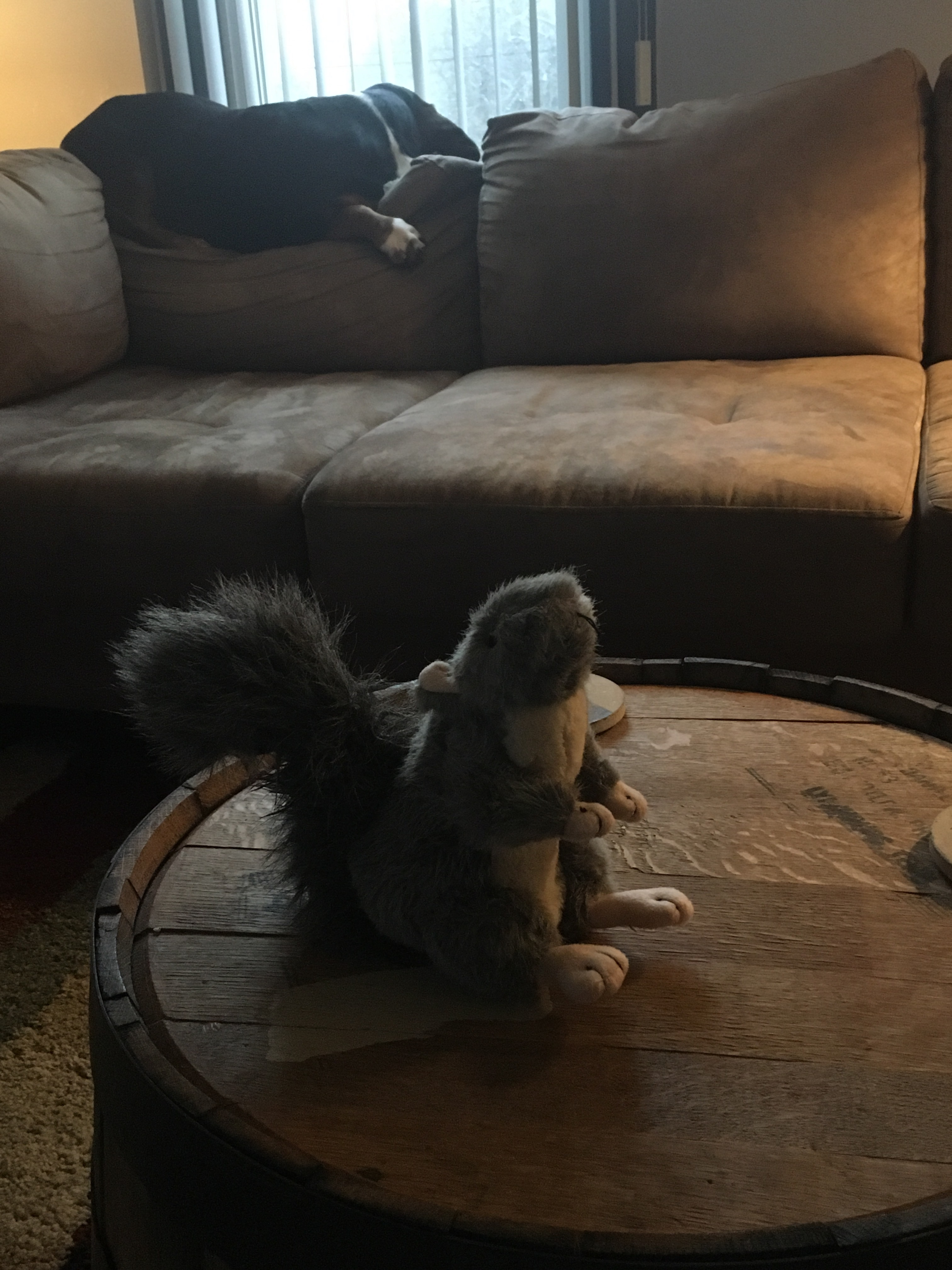 On duty first thing this morning, those squirrels never stop!! Good thing I was able to alert mom to the pending danger….
